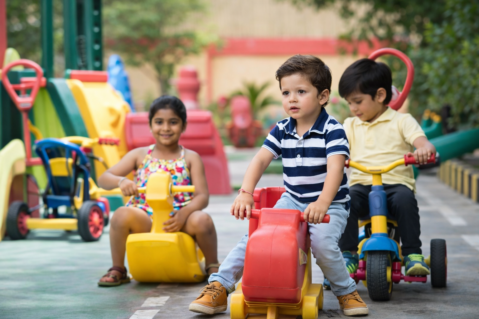 Holistic development is supported through activities that strengthen gross and fine motor skills, sensory learning, health awareness, and self-care habits. Values such as respect, responsibility, and environmental awareness are introduced through stories and real-life connections.